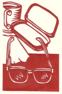 A case for glasses and coffee. Illustratie voor het tijdschrift KLADBLOK
