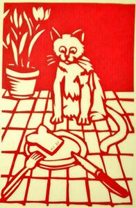 2019Voor een opening van de expositie Stichting KAT uit Ten Boer op Ewsum in juli 2019 knipte ik deze tevreden kat uit.